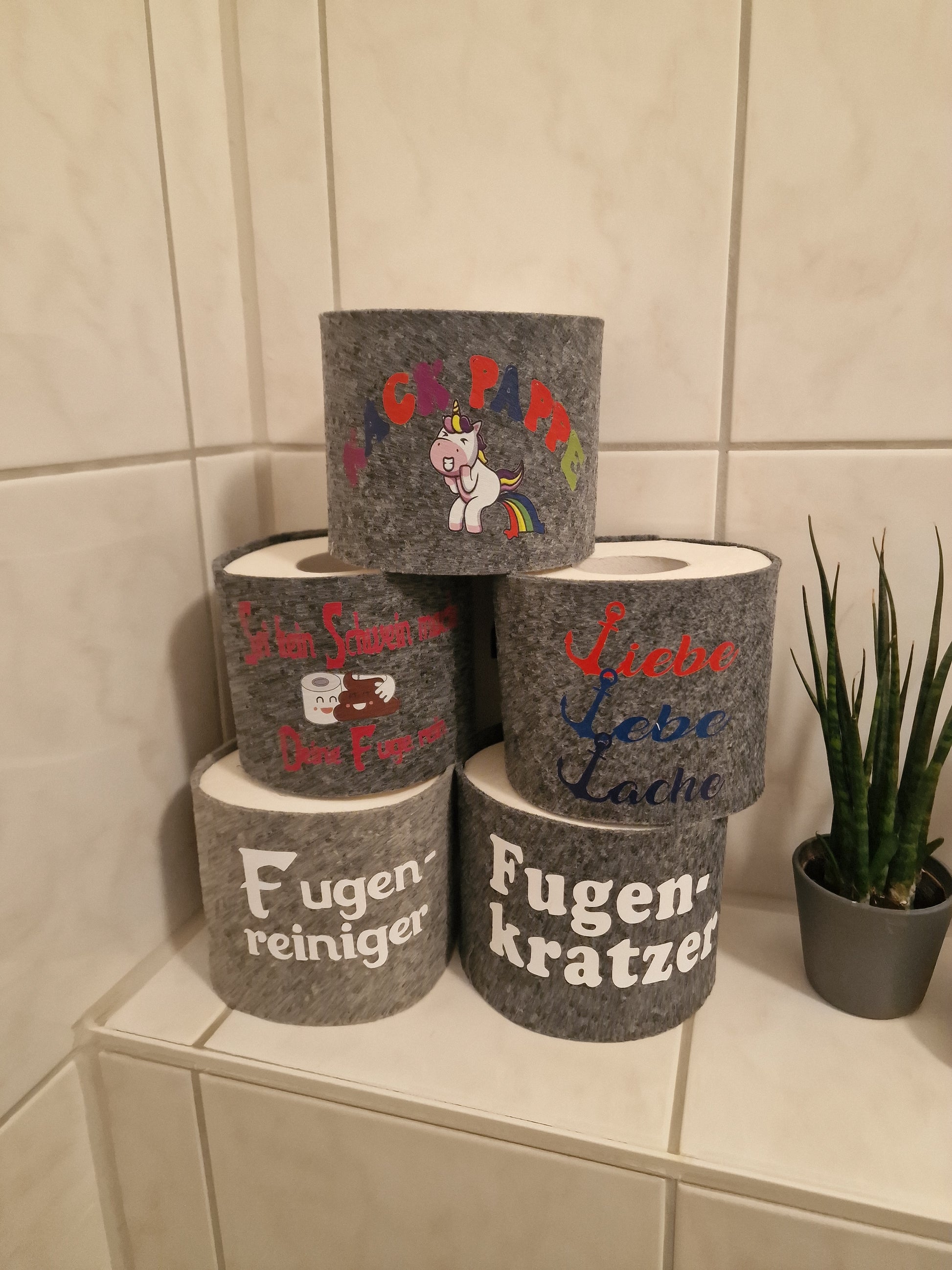 Der Toilettenrollenhalter aus Filz ist nicht nur ein praktisches Accessoire, sondern auch das ideale Geschenk für Freunde oder Familie, die Humor und Individualität schätzen. Dieses originelle Stück wird garantiert für Schmunzeln und positive Überraschung sorgen.